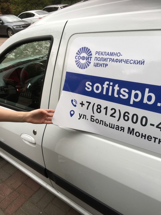 Софит предлагает изготовление оперативной магнитной рекламы на борту автомобиля.