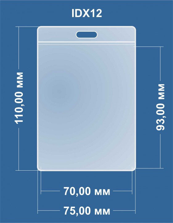 Пластиковый кармашек для бейджей вертикальный IDX 12 с 1 отверстием
