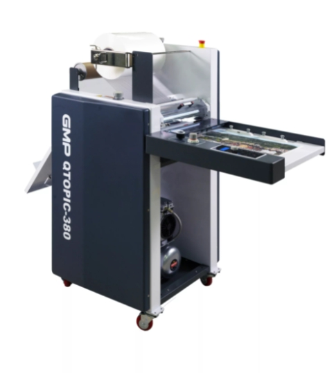 GMP QTOPIC 380/QTOPIC 380 Auto — профессиональные рулонные ламинаторы для цифровой печати формата А3. Являются отличным дополнением к любому печатающему устройству. Выполняют ламинирование, выборочное глянцевание и голографирование, фольгирование, а также текстурное ламинирование при замене ламинирующего вала на эмбоссирующий.